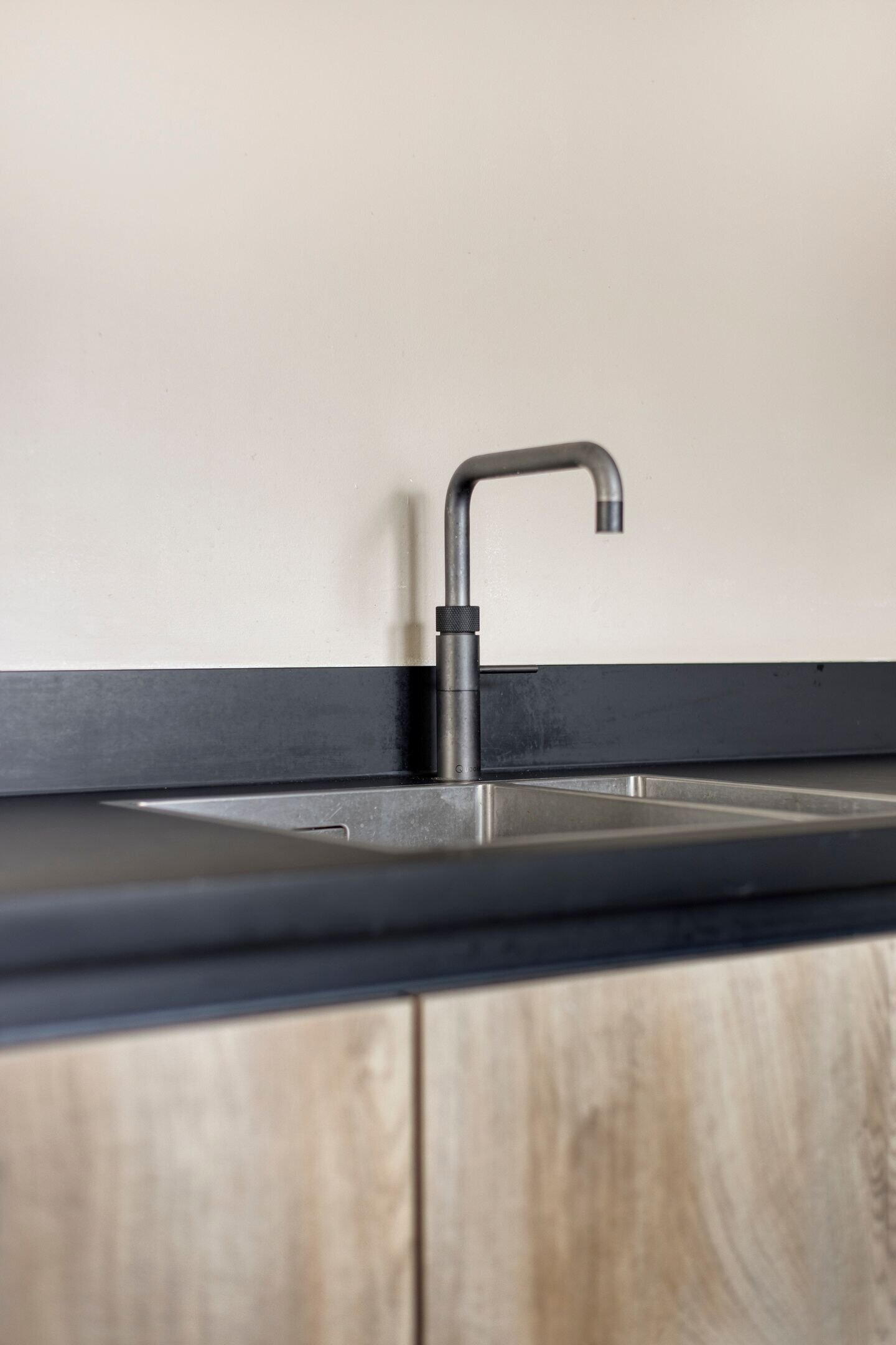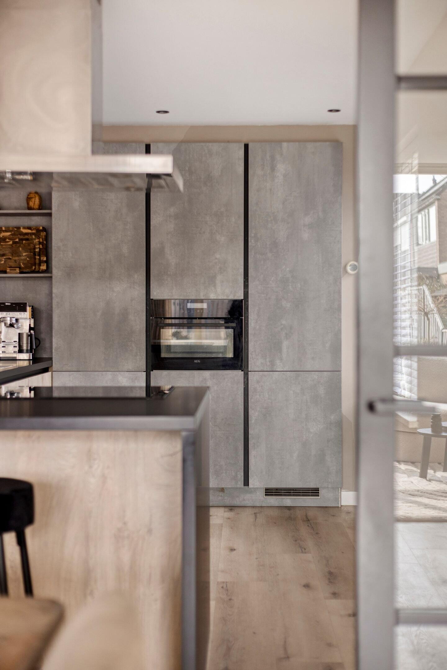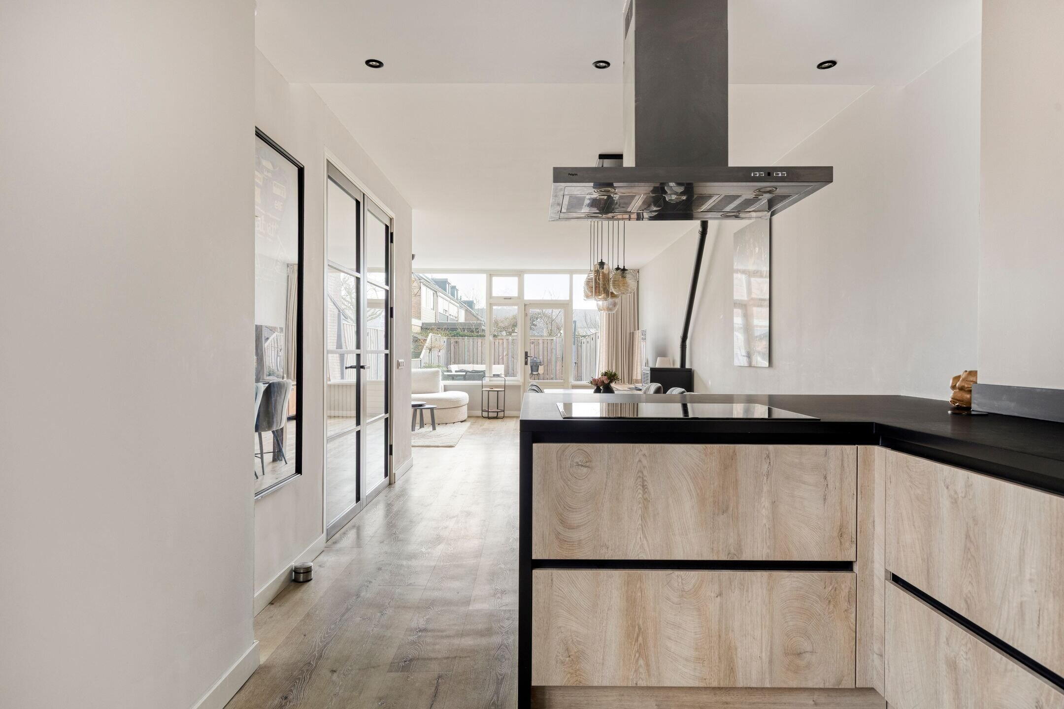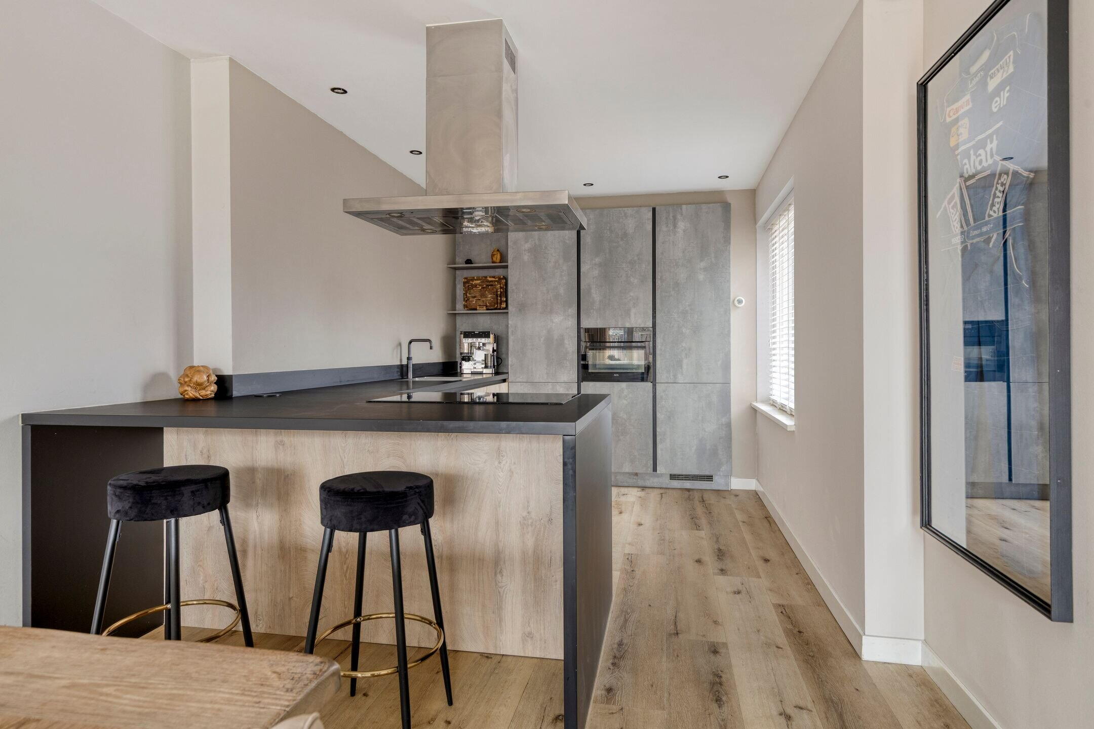 Aan de voorzijde bevindt zich de moderne open keuken met stijlvol schiereiland. Deze keuken vormt het hart van het huis en is een ideale plek voor lange kookavonden en gezellige momenten met familie en vrienden.